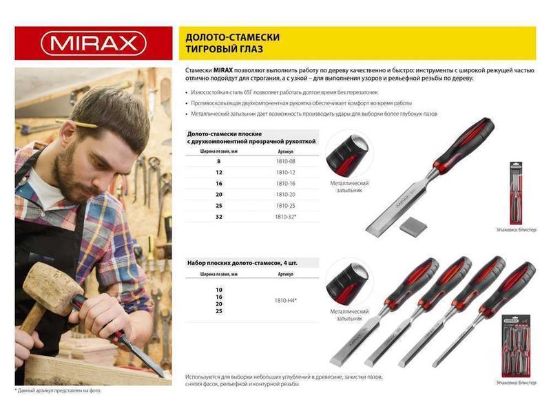 Стамески MIRAX позволяют выполнить работу по дереву качественно и быстро