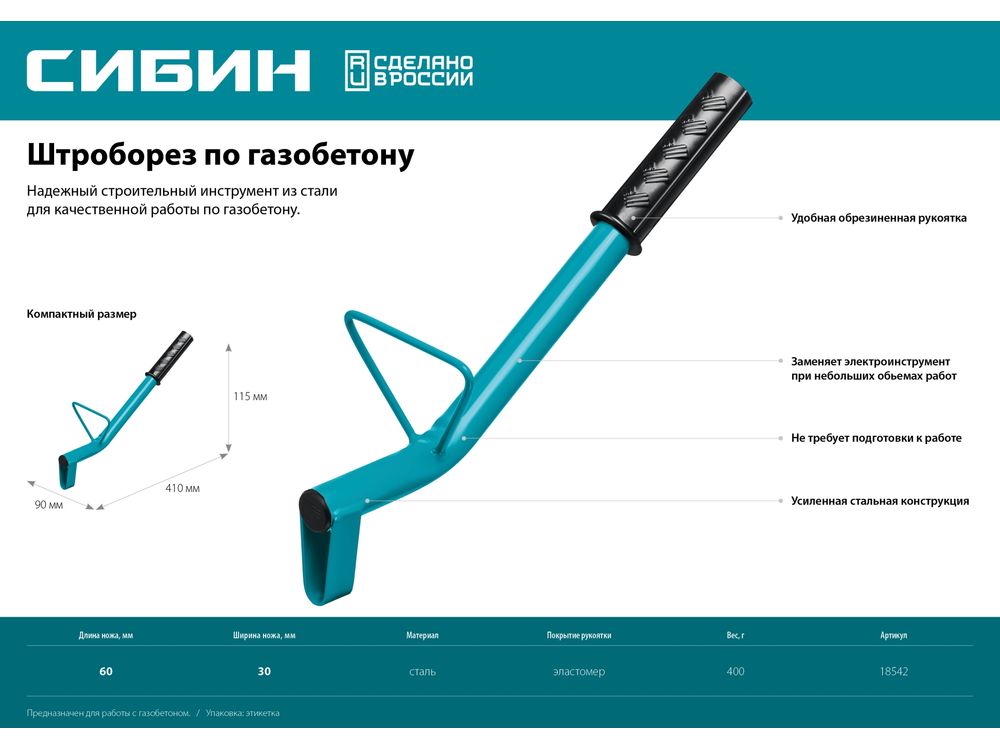 Купить Строительный штроборез по газобетону СИБИН тип U, нож 60х30 мм, длина 400 мм
