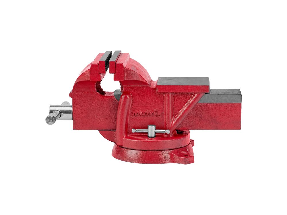 Поворотные слесарные тиски Matrix 18601 с наковальней и губками шириной 125 мм имеют рабочий ход 115 мм и предназначены для захвата и фиксации различных деталей. Поворотный механизм с прижимными винтами позволяет вращать тиски на 360° и фиксировать их в выбранном положении для удобной обработки заготовок с разных сторон. Инструмент используется для шлифовки, сверления и проведения других работ. Будет полезен в мастерской и гараже.