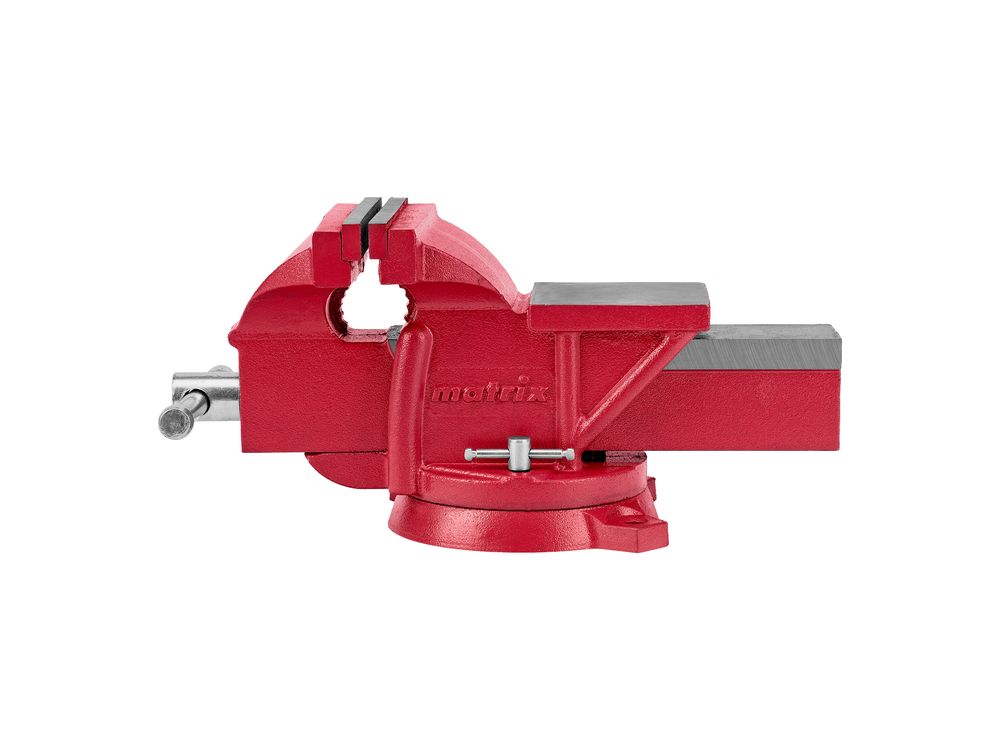 Поворотные слесарные тиски Matrix 18602 с наковальней и губками шириной 150 мм имеют рабочий ход 160 мм и предназначены для захвата и фиксации различных деталей. Поворотный механизм с прижимными винтами позволяет вращать тиски на 360° и фиксировать их в выбранном положении для удобной обработки заготовок с разных сторон. Инструмент используется для шлифовки, сверления и проведения других работ. Будет полезен в мастерской и гараже.