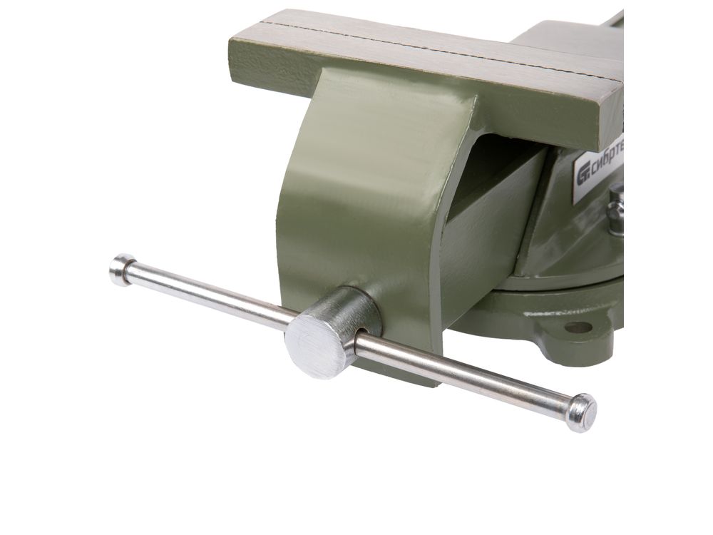 Стальные слесарные тиски Сибртех 18620 с поворотным механизмом и прижимными винтами предназначены для жесткой фиксации деталей. Ширина губок составляет 150 мм, рабочий ход — 150 мм. Используются для сверления, шлифования, пиления, выполнения сборочных и других работ. Тиски вращаются на 360°, что позволяет придать заготовке оптимальное положение. Приспособление будет полезно в мастерской, на даче и в гараже.