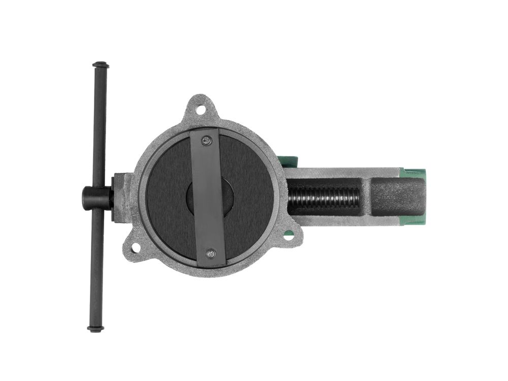 Поворотные слесарные тиски ТСЧ 125 18652 с губками шириной 125 мм, с креплением для стола и винтовым зажимом, используются для надежной фиксации крупных деталей. В основании предусмотрены отверстия для крепления к верстаку. Тиски оптимальны для выполнения непрофессиональных столярных и слесарных работ.