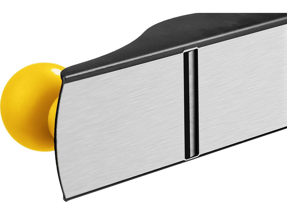 Меры предосторожности: лезвие поставляется с пред-варительной заточкой. Перед началом работы доведите рабочую кромку лезвия на мелкозернистом камне под углом 25°. Установите лезвие в рубанок таким образом, чтобы кромка лезвия была параллельна основе. Отрегулируйте глубину строгания. Не выдвигайте лезвие из корпуса чрезмерно – это может препятствовать нормальному процессу строгания. Соблюдайте необходимые меры безопасности – работай-те только с правильно заточенным ножом инструмента. Кладите инструмент только на боковую поверхность колодки ножом от «себя». При возникновении неисправ-ностей, препятствующих функциональному назначению инструмента, замените изделие.
