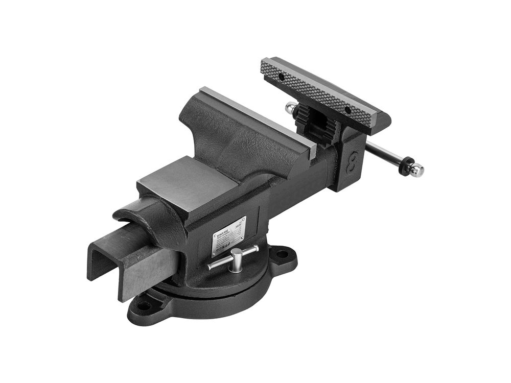 Функциональность — тиски поворачиваются на 360°, что позволяет менять и выбирать позицию инструмента для удобной работы с заготовкой.