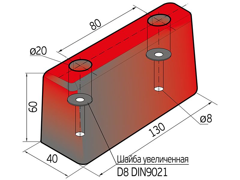 Отбойник (буфер) резиновый 130х40х60 мм-11774