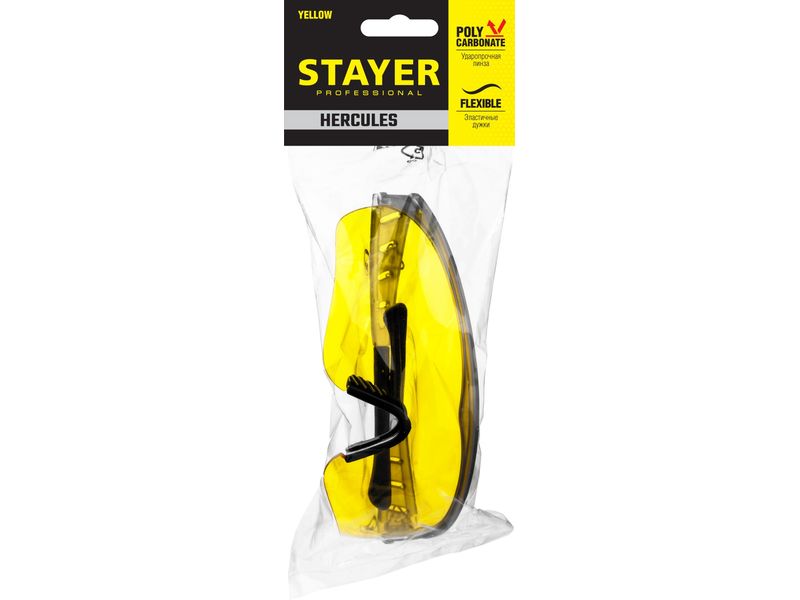 Купить STAYER HERCULES Желтые, очки защитные открытого типа, мягкие двухкомпонентные дужки.