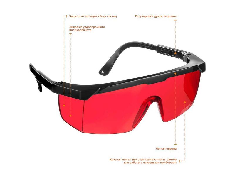 Купить STAYER OPTIMA Красные, очки защитные открытого типа, регулируемые по длине дужки.
