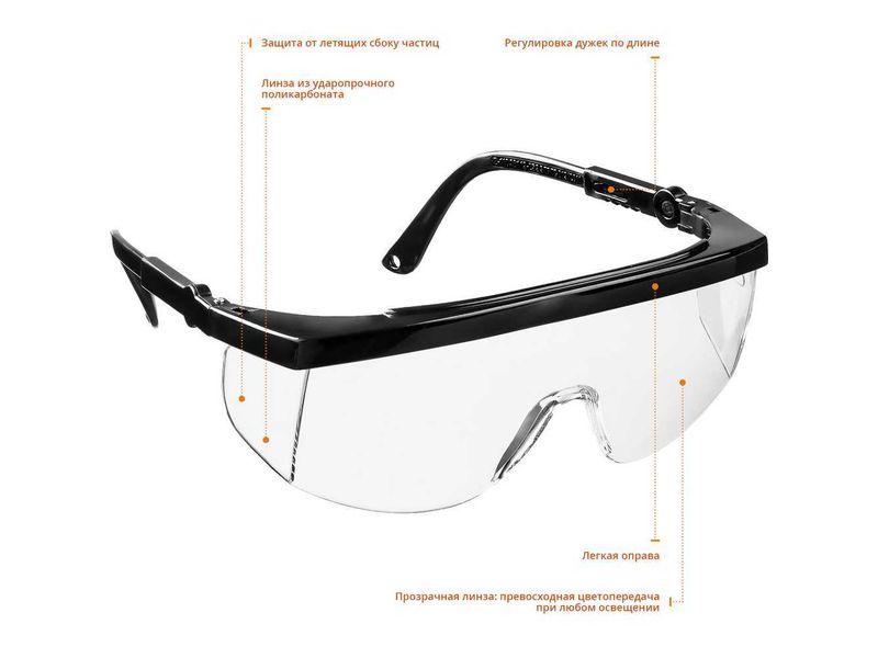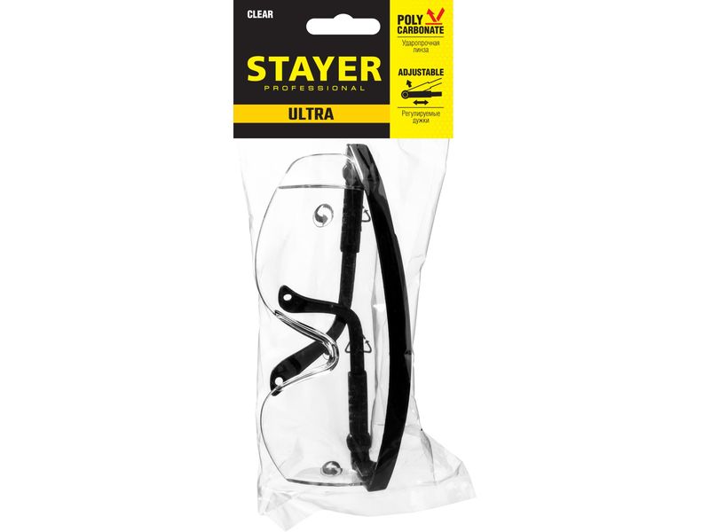 Купить STAYER ULTRA Прозрачные, очки защитные открытого типа, регулируемые по длине и углу наклона дужки.