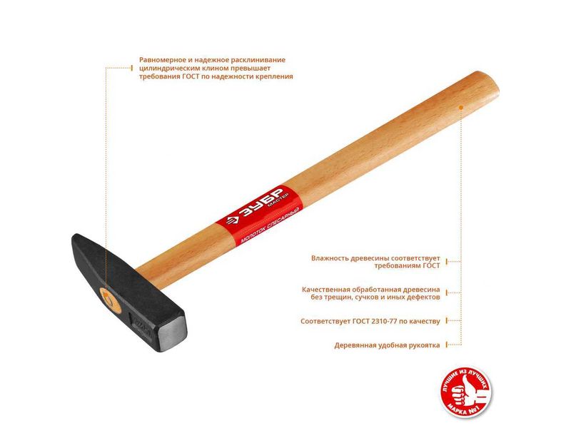 ЗУБР 300 г молоток слесарный с деревянной рукояткой-10