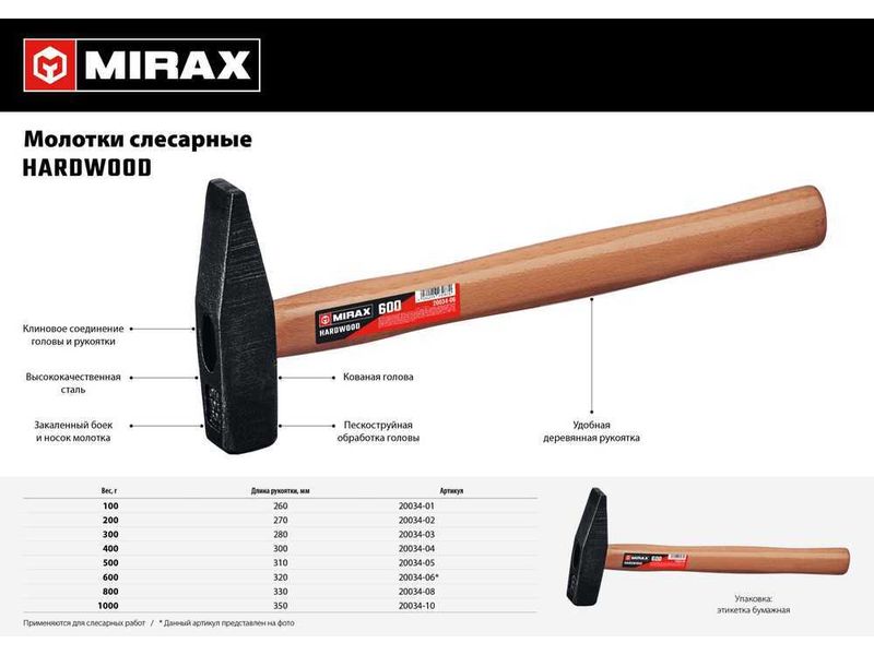 MIRAX 1000 молоток слесарный с деревянной рукояткой-10