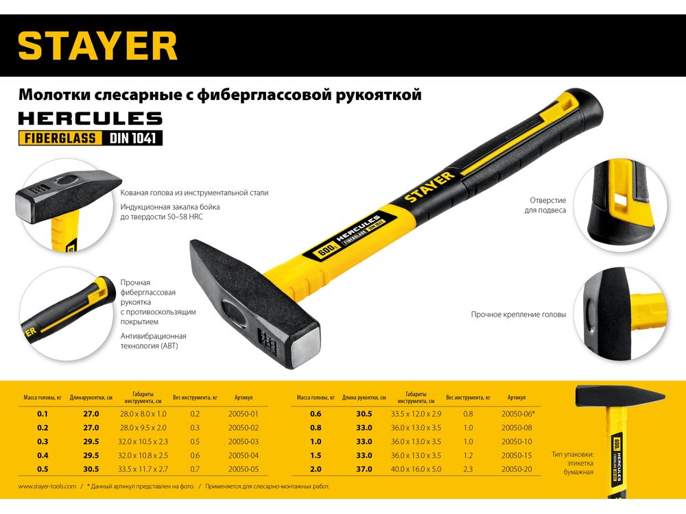 STAYER Hercules 800 г молоток слесарный с фиберглассовой рукояткой-10