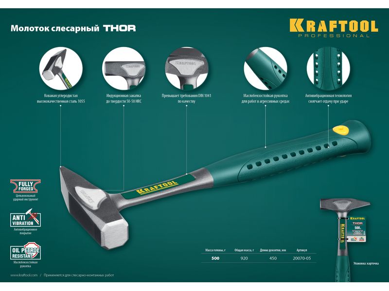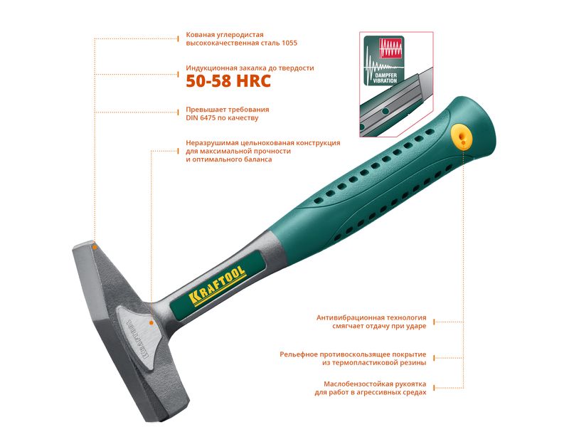 Молоток KRAFTOOL "AutoKraft" цельнокованый, маслобензостойкая виброгасящая эргономичная рукоятка, 500г