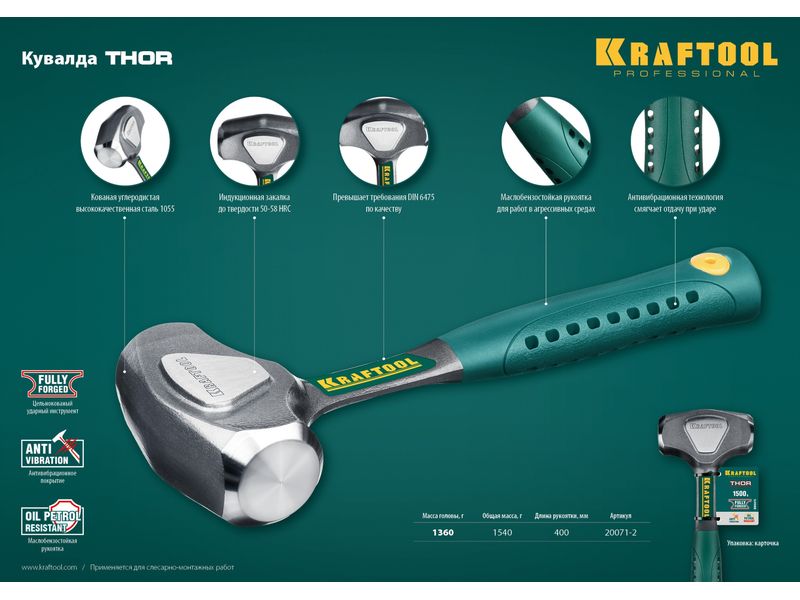 Ручной инструмент Молотки, Кувалды, Киянки, Гвоздодеры Кувалды Кувалда KRAFTOOL "AutoKraft" цельнокованая, маслобензостойкая виброгасящая эргономичная рукоятка, 2000г-11