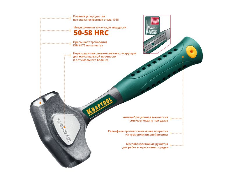 Кувалда KRAFTOOL "AutoKraft" цельнокованая, маслобензостойкая виброгасящая эргономичная рукоятка, 2000г
