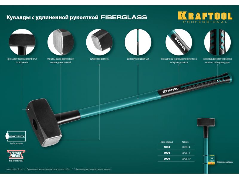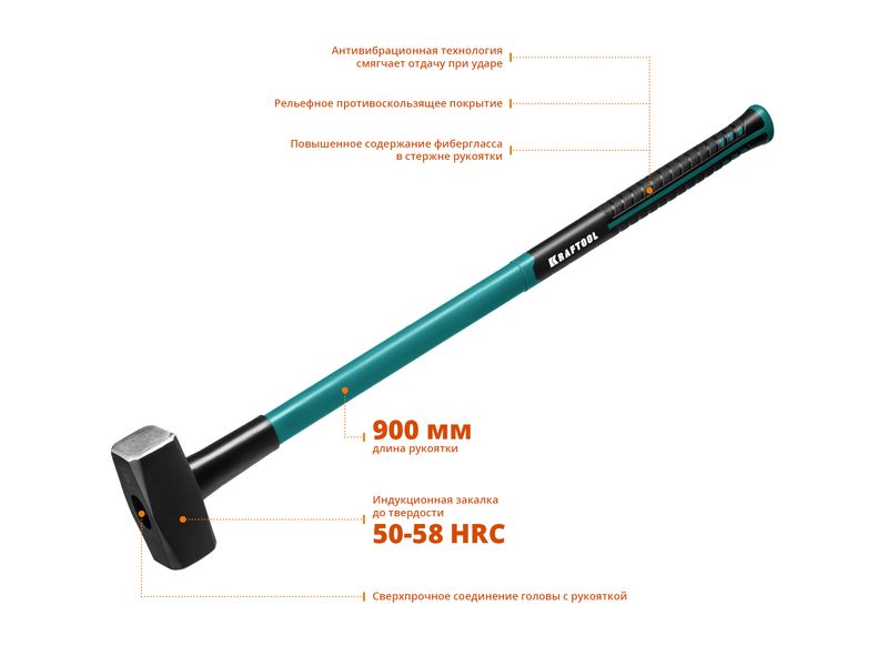 KRAFTOOL Fiberglass 4 кг кувалда с фиберглассовой удлинённой рукояткой