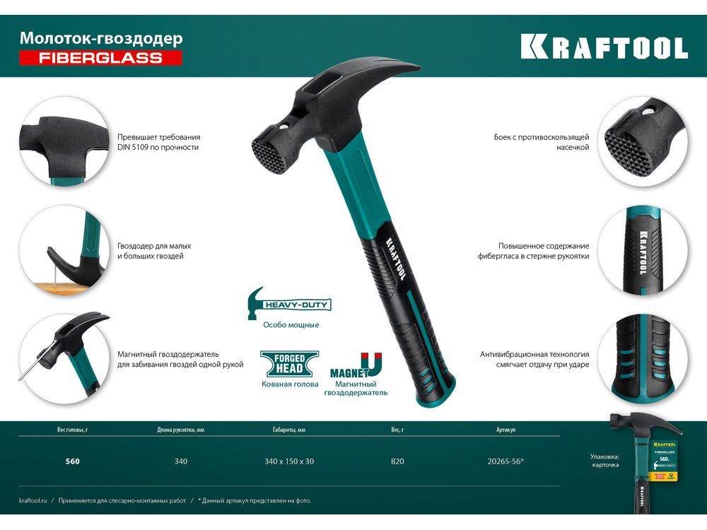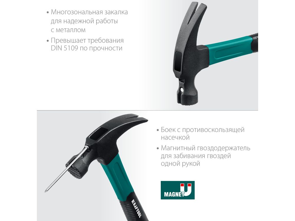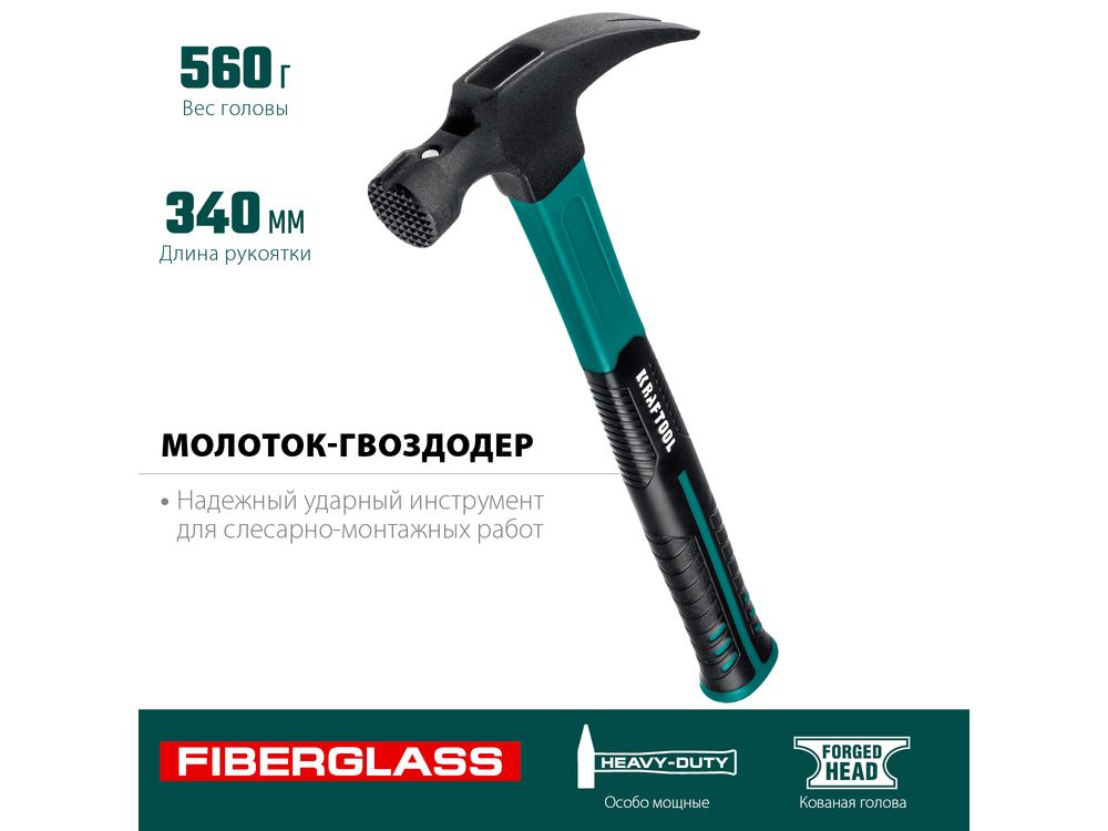 KRAFTOOL Fiberglass 560 г молоток-гвоздодёр столярный c фиберглассовой рукояткой