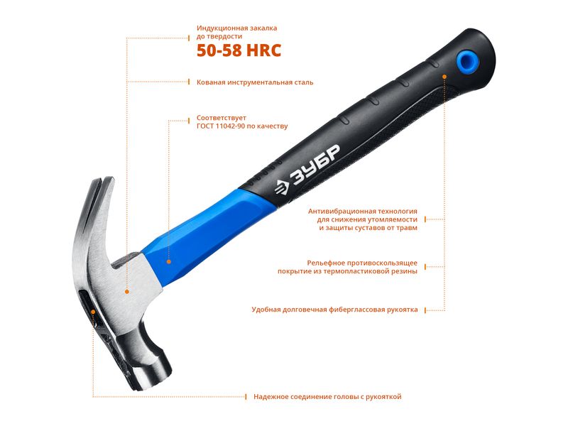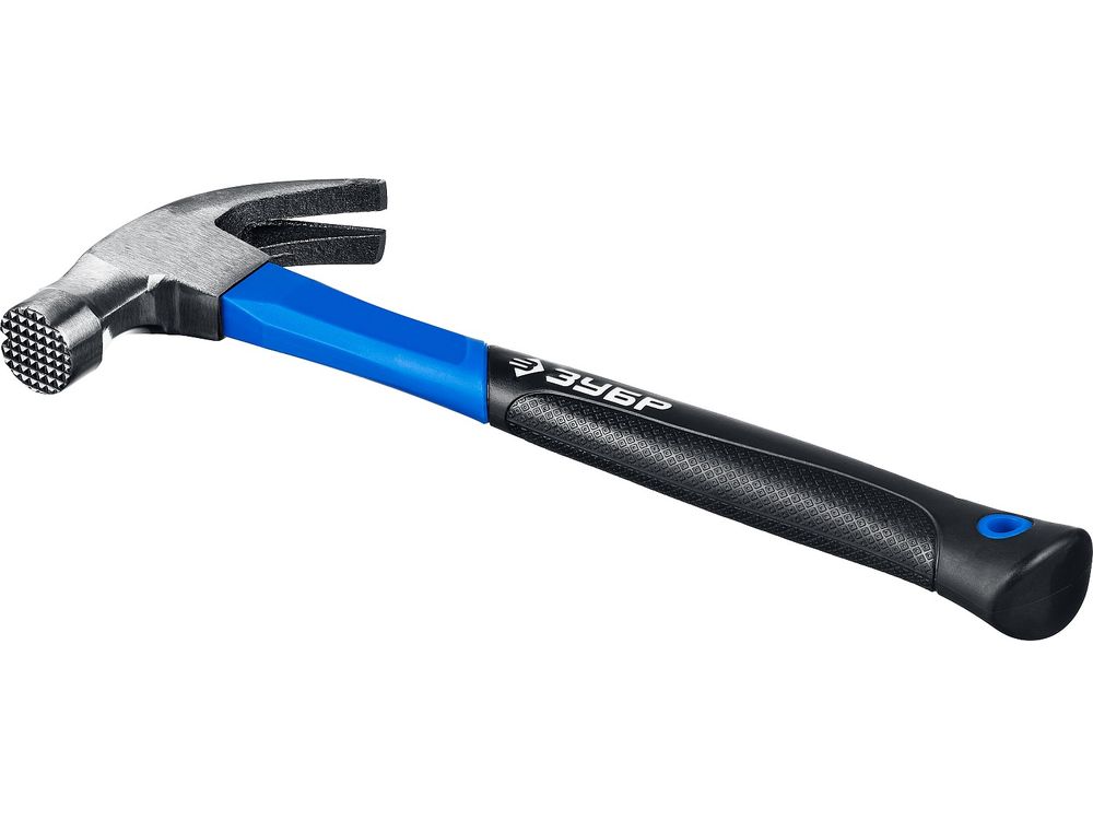 Столярный молоток-гвоздодёр ЗУБР с фиберглассовой рукояткой, кованный, с магнитом, 450 г, Профессионал
