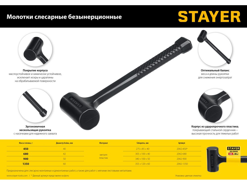 Купить STAYER 1350 г 60 мм безынерционный молоток облитый эластомером