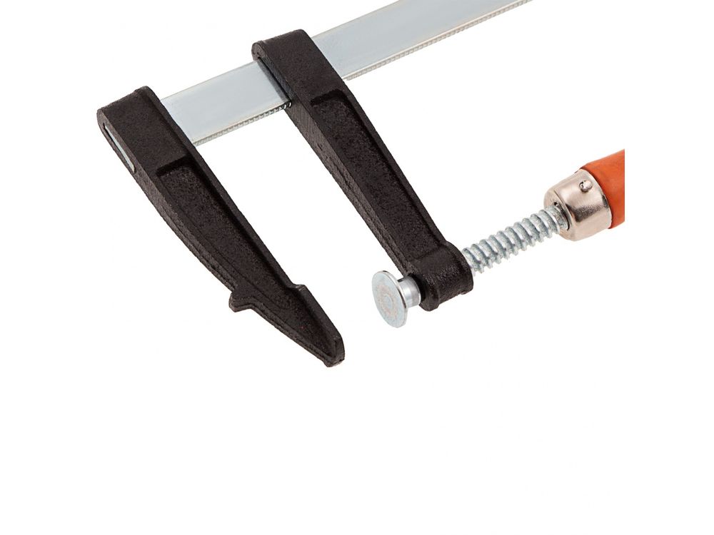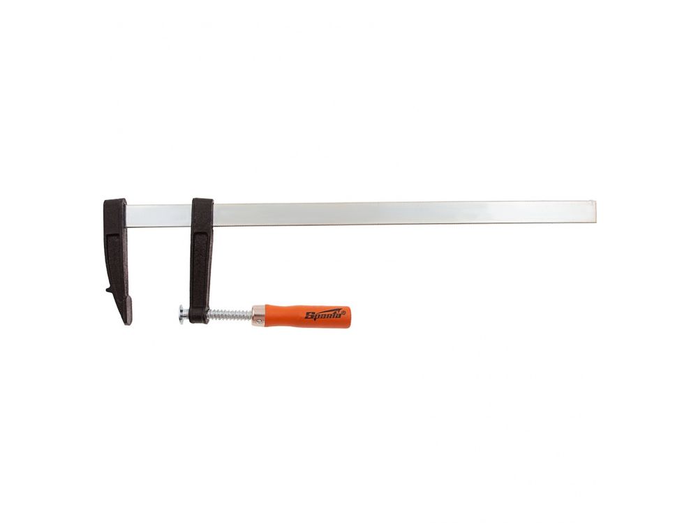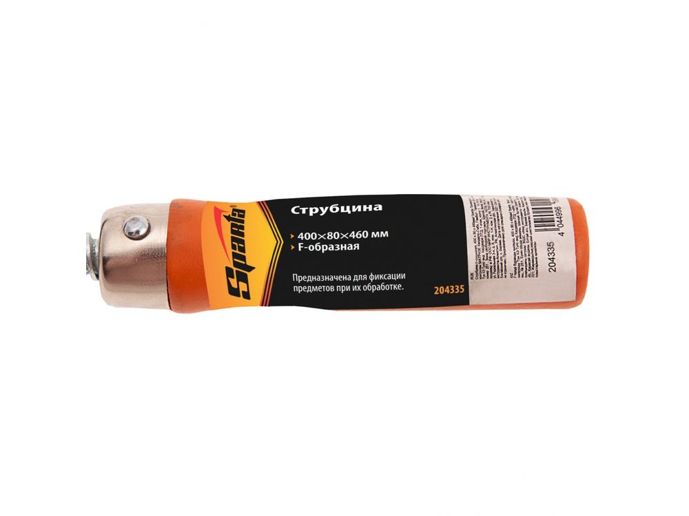 F-образная струбцина Sparta 204335, 400 х 80 х 460 мм, используется в столярном и слесарном деле и позволяет фиксировать заготовки из металла, древесины и других материалов для их соединения или обработки. Деталь помещают между губками, одна из которых подвижна и служит для регулировки величины захвата. Винтовой зажим позволяет прикладывать значительное усилие для надежной фиксации. Защитные накладки предотвращают повреждение детали. Элементы конструкции выдерживают высокую температуру, поэтому струбцина подходит для проведения сварочных работ, при этом пластиковые накладки необходимо снять.