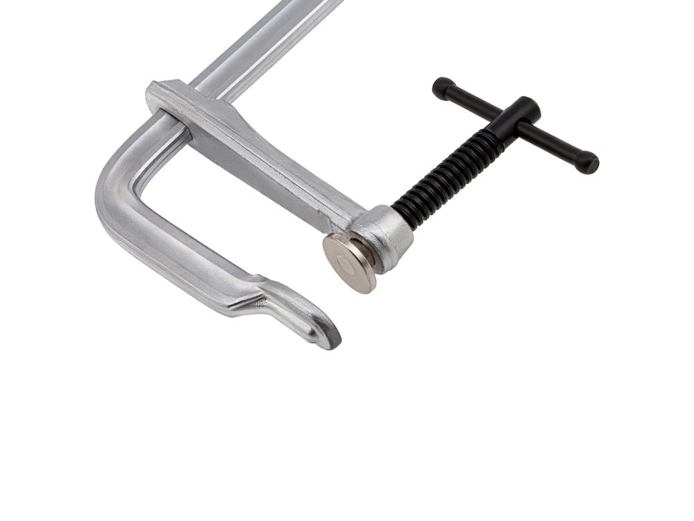 Хромированное покрытие надежно защищает струбцину от коррозии.