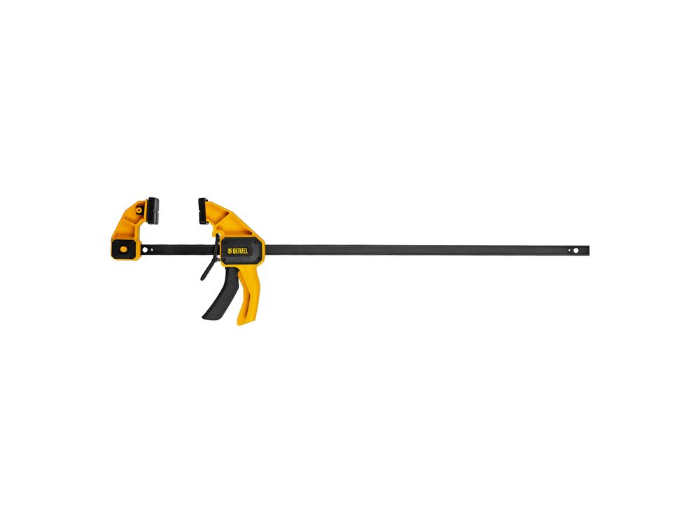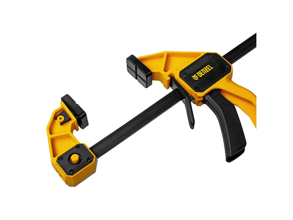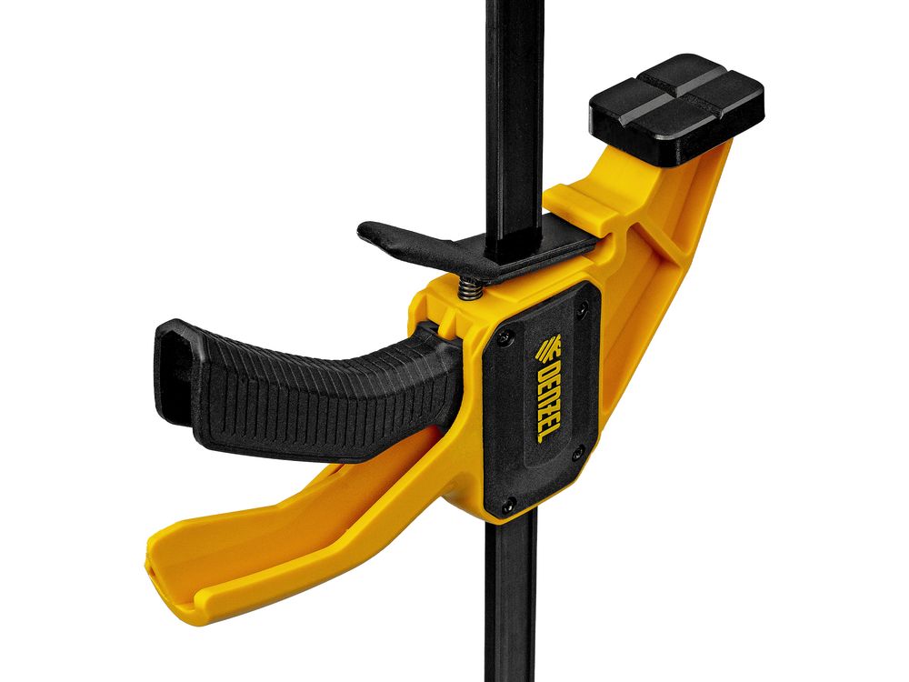 Комфортное использование — струбцина весит всего 764 г, обрезиненная кнопка фиксации обеспечивает удобный захват.