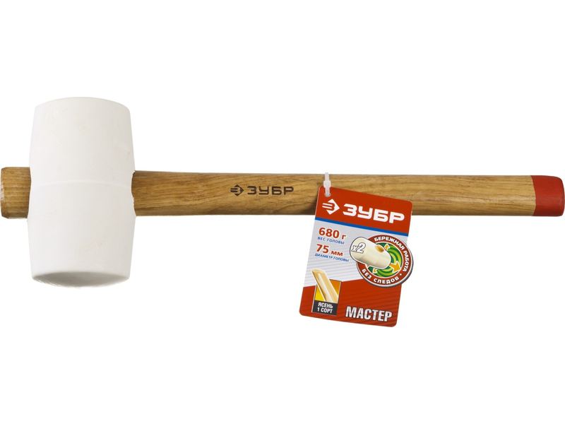 Киянка ЗУБР МАСТЕР резиновая белая, с деревянной рукояткой, 0,68кг