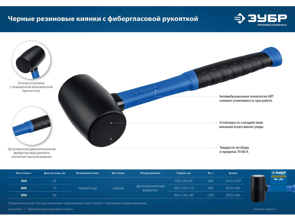 Купить Чёрная резиновая киянка ЗУБР Профессионал 680 г
