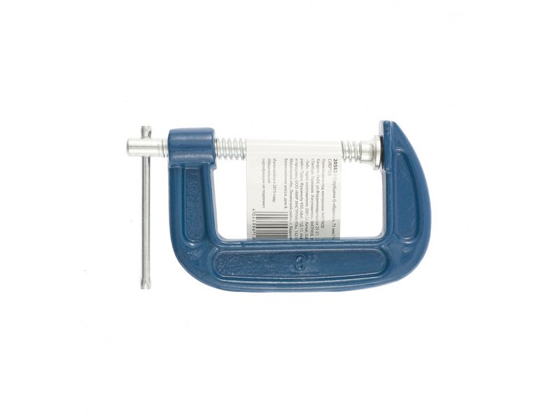 Струбцина G-образная Сибртех 20582 с шириной зажима 75 мм применяется для фиксации заготовок с целью их склеивания, а также для крепления к верстаку или станку для опиливания, сверления и другой обработки. Может использоваться во время сварки металлических деталей. Рама выполнена из чугуна с шаровидным графитом, поэтому отличается высокой прочностью и устойчивостью к нагрузкам. Струбцина пригодится в слесарной и столярной мастерской, а также будет полезна в домашнем хозяйстве.