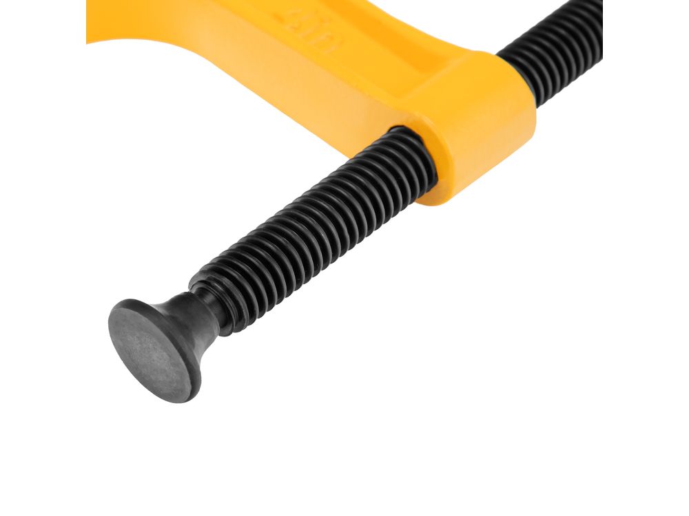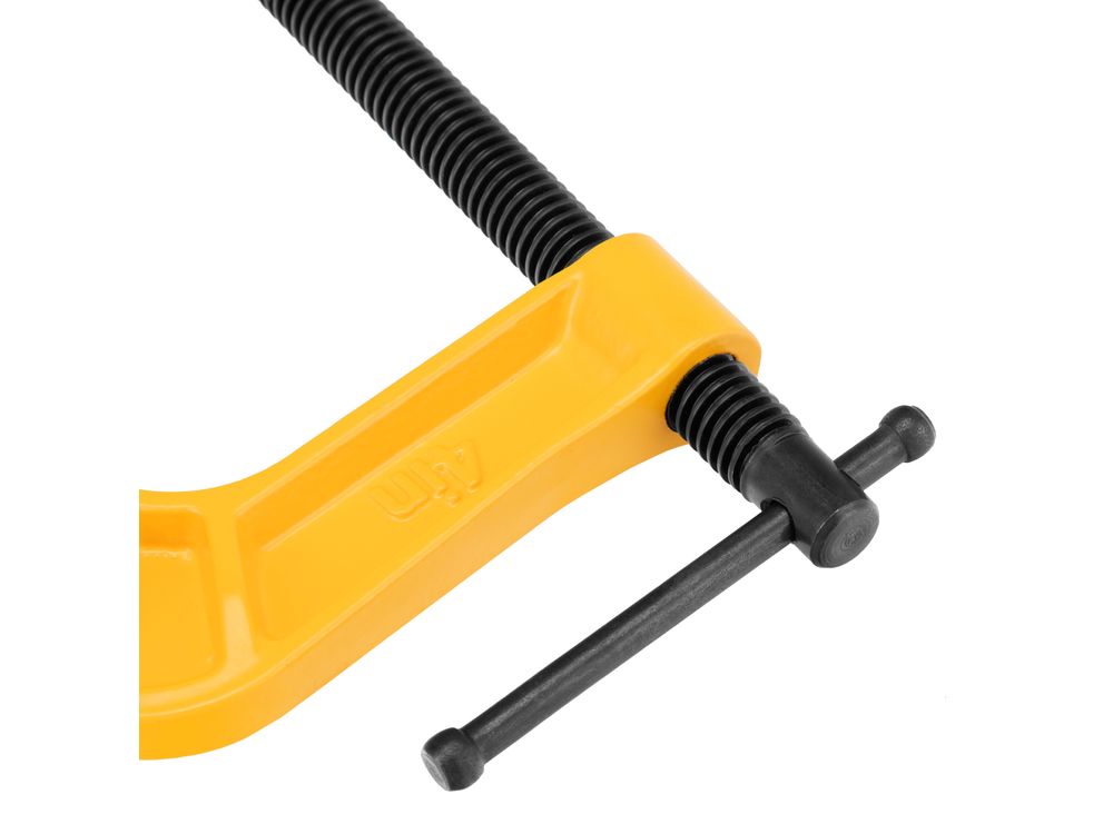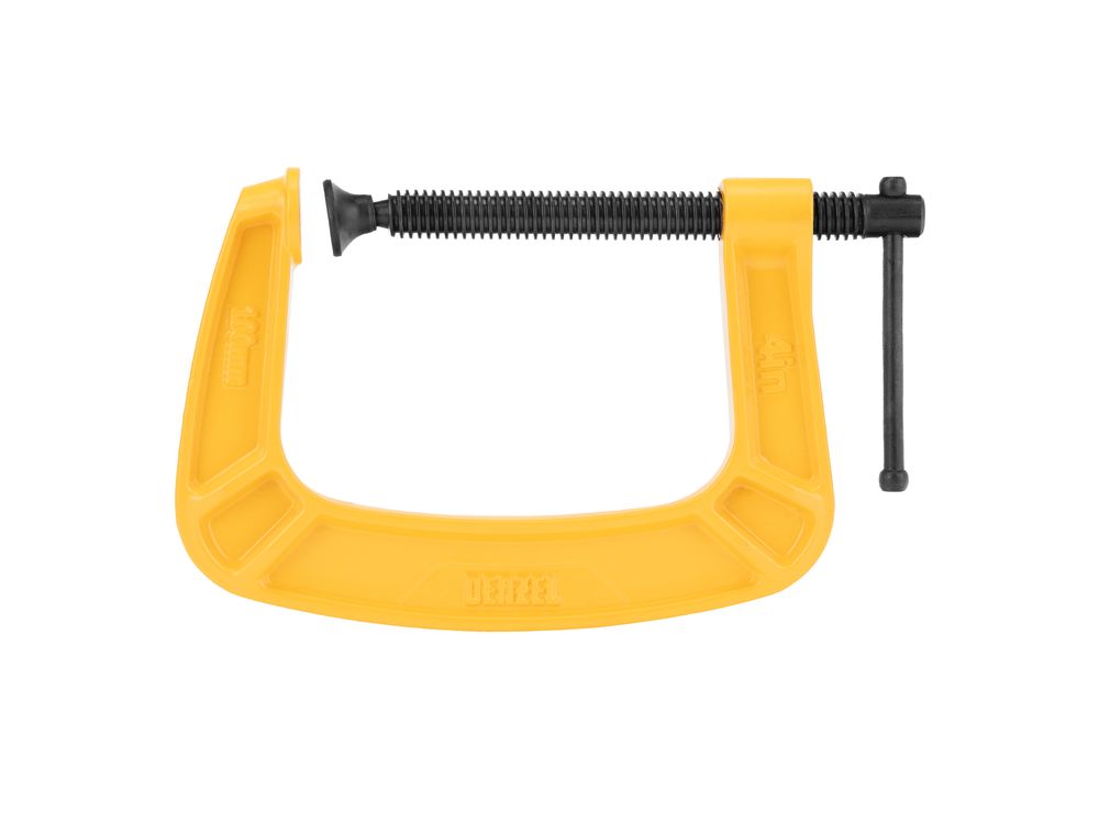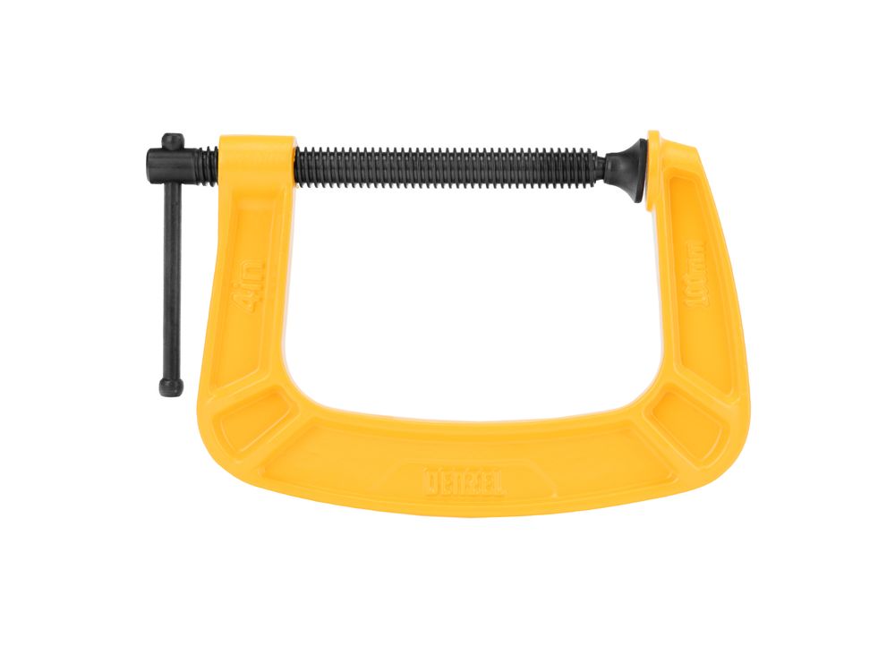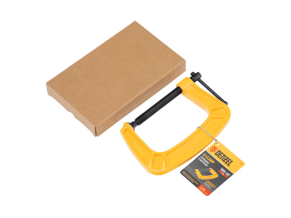 G-образная струбцина Denzel 20643 с максимальной шириной зажима 100 мм используется для фиксации заготовок или закрепления их на верстаке, станке или между собой. Позволяет склеивать детали, а также сверлить их, шлифовать, опиливать и проводить другие работы. Может использоваться во время выполнения сварочных работ. Винт с трапециевидной резьбой обеспечивает надежную фиксацию предметов. Струбцина применяется в слесарном и столярном деле, будет полезна также домашнем хозяйстве.