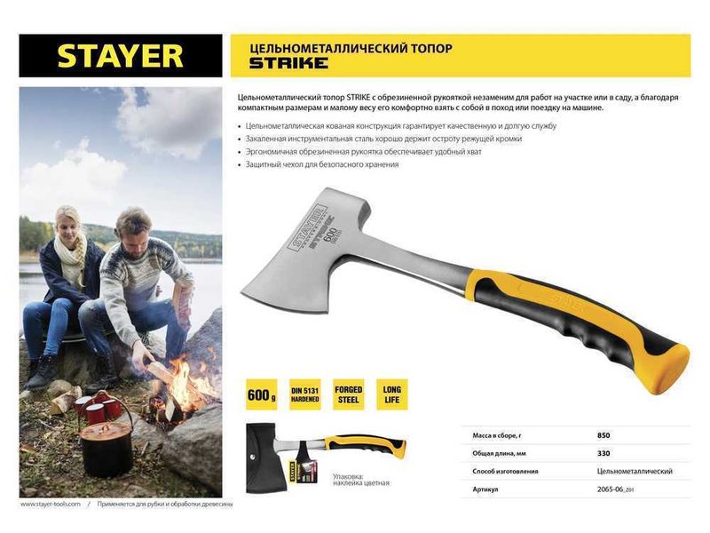 Топор STRIKE 600 г цельнометаллический, STAYER 2065-06-52
