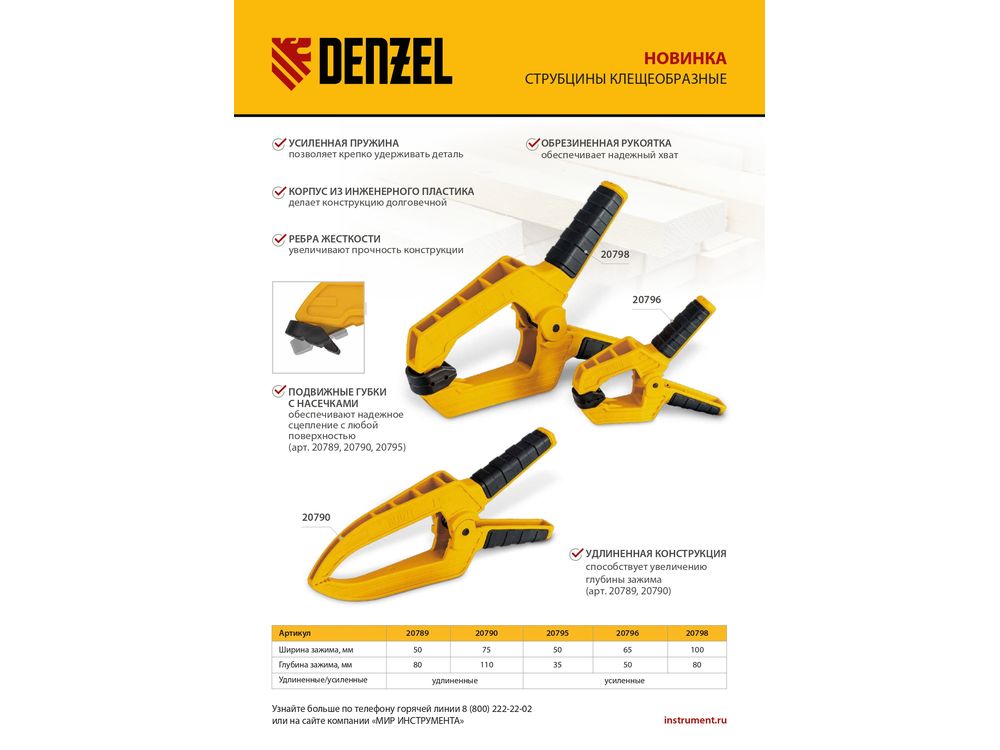 Струбцина клещеобразная удлиненная Denzel 20795 с глубиной зажима 35 мм, с двухкомпонентными рукоятками, способна удерживать детали толщиной до 50 мм. Будет полезна при склеивании или разметке заготовок. Подвижные губки с углублениями на прижимных поверхностях позволяют максимально точно позиционировать деталь при захвате. Струбцина пригодится в столярной мастерской, дома или на даче.