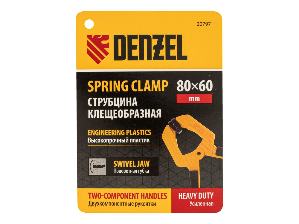 Струбцина клещеобразная удлиненная Denzel 20797 с глубиной зажима 60 мм, с двухкомпонентными рукоятками, способна удерживать детали толщиной до 80 мм. Будет полезна при склеивании или разметке заготовок. Подвижные губки с углублениями на прижимных поверхностях позволяют максимально точно позиционировать деталь при захвате. Струбцина пригодится в столярной мастерской, дома или на даче.