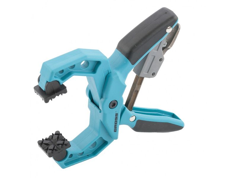 Клещеобразная струбцина Gross 20805 в пластиковом корпусе, с храповым механизмом жесткой фиксации, используется для фиксирования деталей толщиной 14 дюйма / 100 мм при их скреплении и обработке. Позволяет зажимать и удерживать заготовки из древесины и других материалов. Благодаря надежному металлическому храповому механизму губки жестко фиксируют предметы, что отличает данную модель от струбцин прищепочного типа на пружинах. Инструмент предназначен для профессионального использования.
