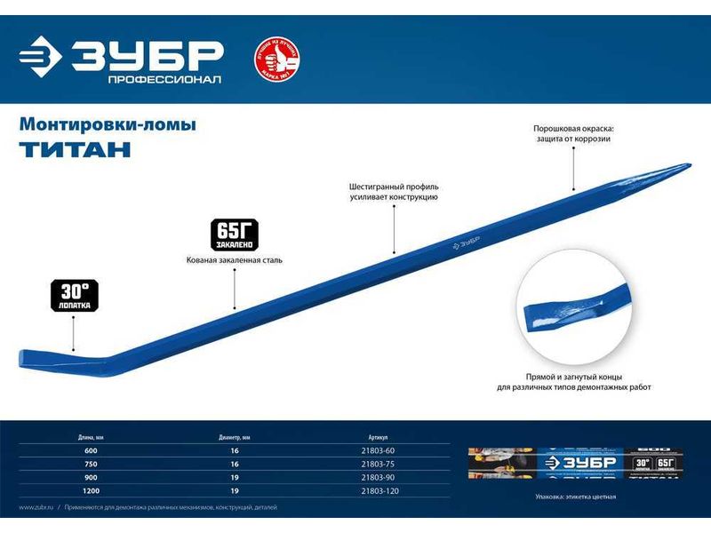 Профессиональный инструмент для демонтажных работ «ЗУБР» выдерживает длительные высокие нагрузки, обладает высоким ресурсом, имеет длительный срок службы и обеспечивает качественную работу.