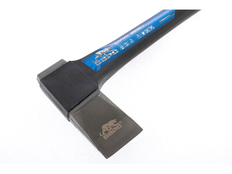 Предназначен для колки древесины различных пород. Полотно изготовлено из инструментальной стали У13 методом свободной ковки. Твердость полотна составляет 48-52 HRC. Фибергласовое обрезиненное топорище обладает высокой механической прочностью, устойчиво к воздействию агрессивной среды и отлично поглощает колебания, возникающие при работе, не передавая их на руку.