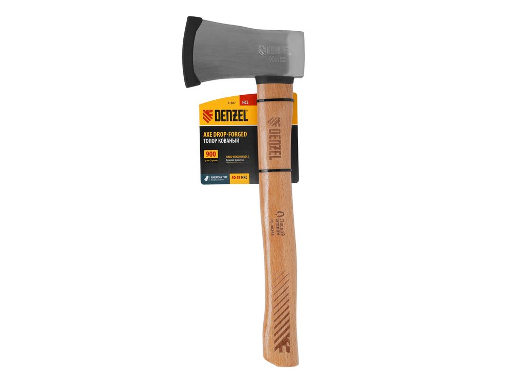 Кованый топор Denzel 21887 американского типа, с полотном весом 900 г и буковой рукояткой, предназначен для рубки и тесания древесины любых пород. Подходит для бытового и профессионального применения, также будет полезен любителям походов, охотникам и рыболовам — благодаря компактным размерам топор удобно брать с собой.