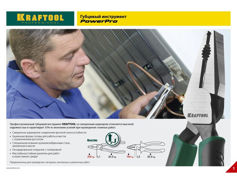 Плоскогубцы KRAFTOOL "PowerPro" комбинированные, CrMo-сталь, покрытие оксидированное с полировкой, 200мм Профессиональные плоскогубцы KRAFTOOL изготовленные с применением инновационной технологии смещенного шарнира, гарантируют максимальную надежность