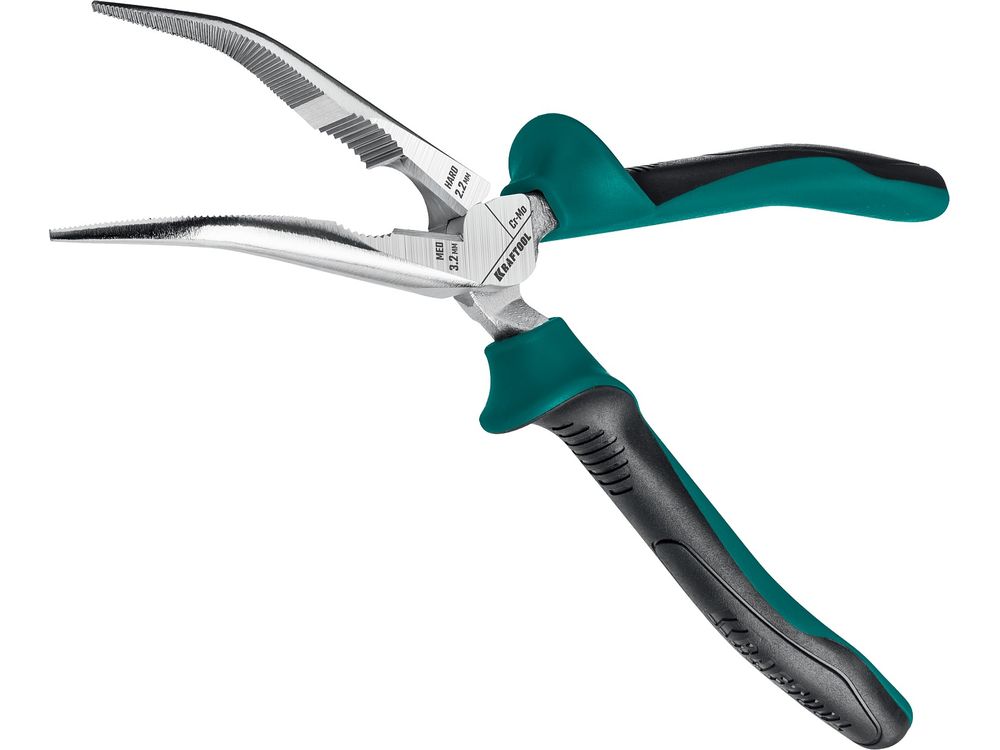 Тонкогубцы KRAFTOOL"KRAFT-MAX",изогнутые,Cr-Mo,маслобензост двухкомп рукоятки,шарнирное соединение с повыш износост,200мм