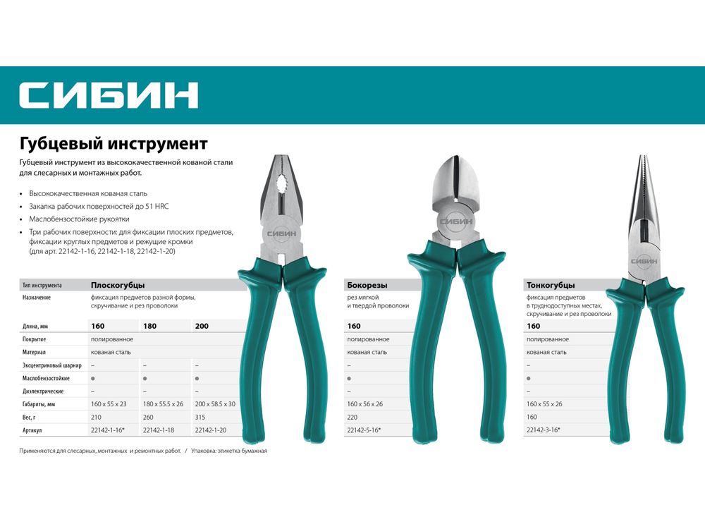 СИБИН 160 мм, плоскогубцы (22142-1-16)-35