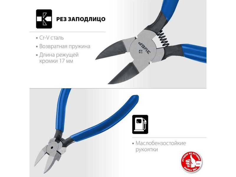 Бокорезы "БУЛЬДОГ Мини", для пластика и меди, хромоникелевая сталь, обливные рукоятки, особочистый рез заподлицо, 150 мм, ЗУБР Профессионал
