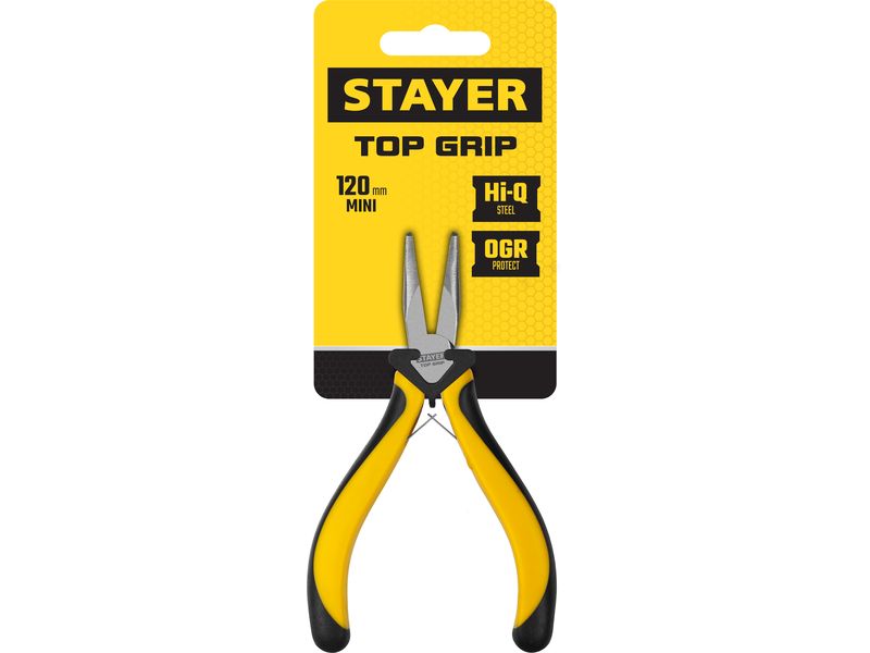 Тонкогубцы изогнутые TopGrip, STAYER 2218-3, 120мм