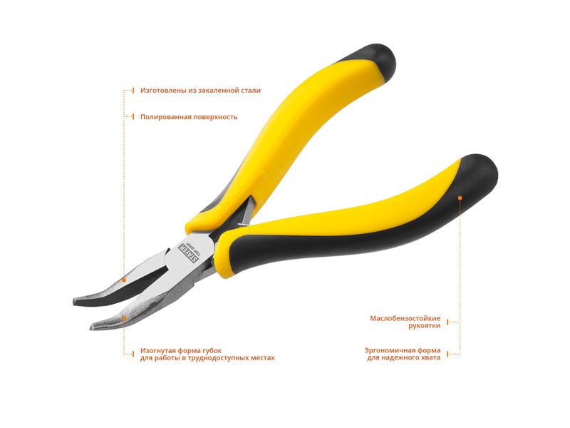Мини тонкогубцы изогнутые разработаны для различных мелких слесарных работ, а также для выполнения работ в электронике и точной механике.