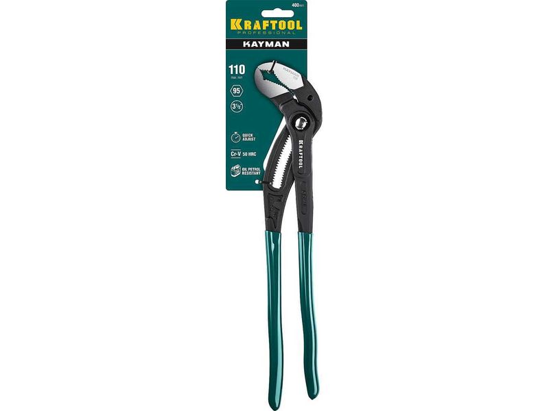 Купить Клещи переставные "KAYMAN", быстрая регулировка, Cr-V, max захват до 95 мм, 400мм, KRAFTOOL