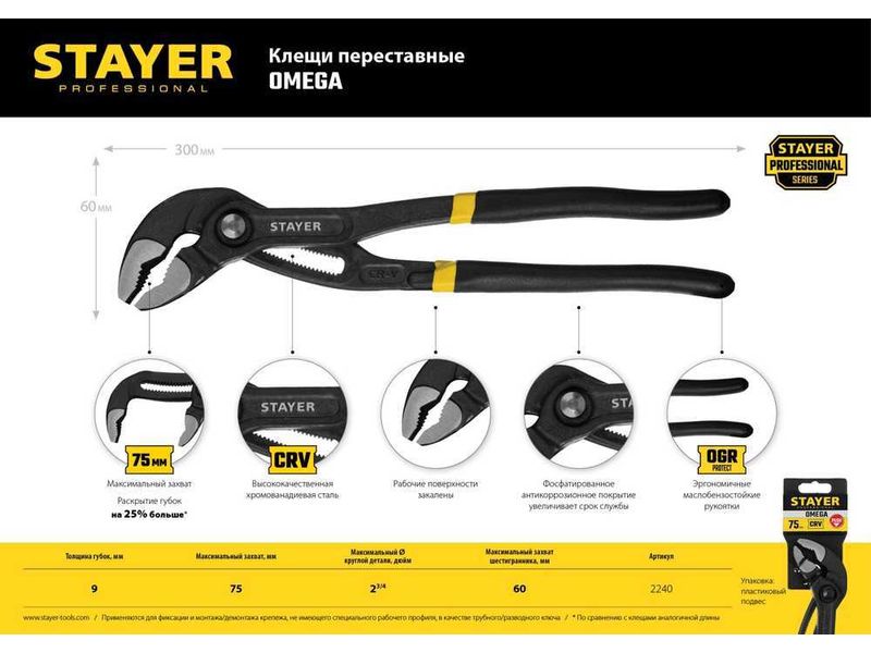 Купить Клещи переставные "OMEGA", c быстрой регулировкой, Cr-V, тип "К", 300мм, STAYER Professional