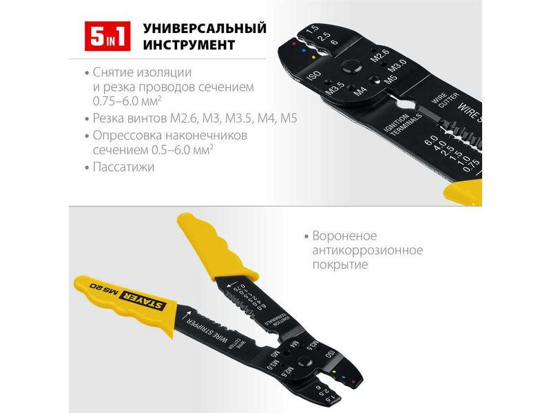 для снятия изоляции, обжима наконечников, резки кабеля.