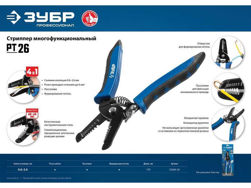 PT-26 стриппер многофункциональный, 0.6 - 2.6 мм, ЗУБР Профессионал