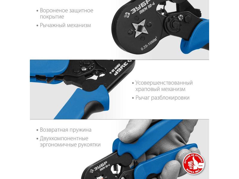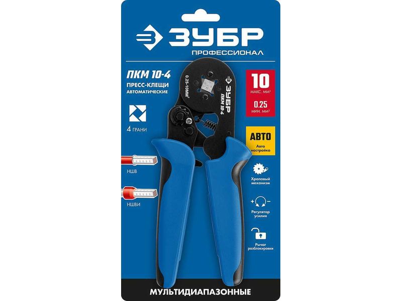 Обжим изолированных и неизолированных втулочных наконечников 0.5-10 мм2.