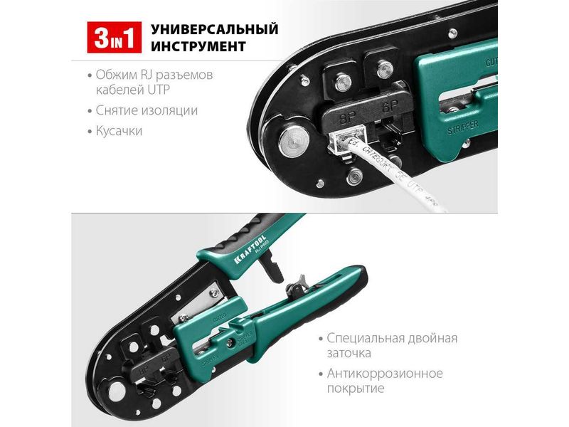 для обжима RJ разъемов, снятия изоляции и обрезки кабеля.