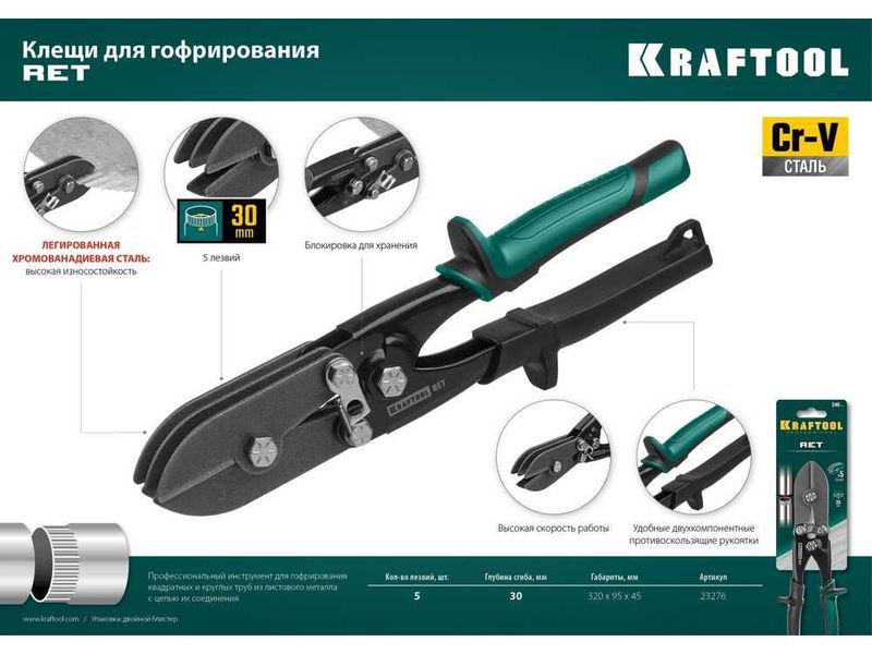 Профессиональный инструмент для гофрирования квадратных и круглых труб из листового металла с целью их соединения, кол-во лезвий: 5