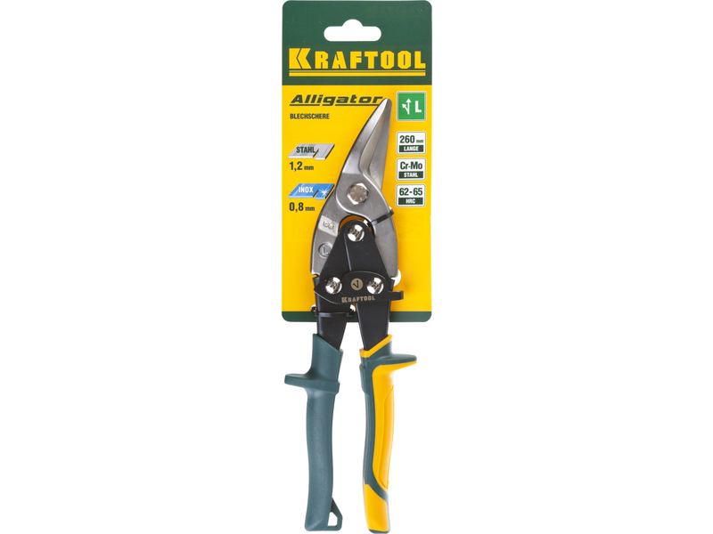 Ножницы по металлу рычажные высокомощные KRAFTOOL "Alligator" 260мм, левые, кованая Cr-MO сталь, холоднокатанная сталь – 1,2мм, нерж.сталь – 0,8мм